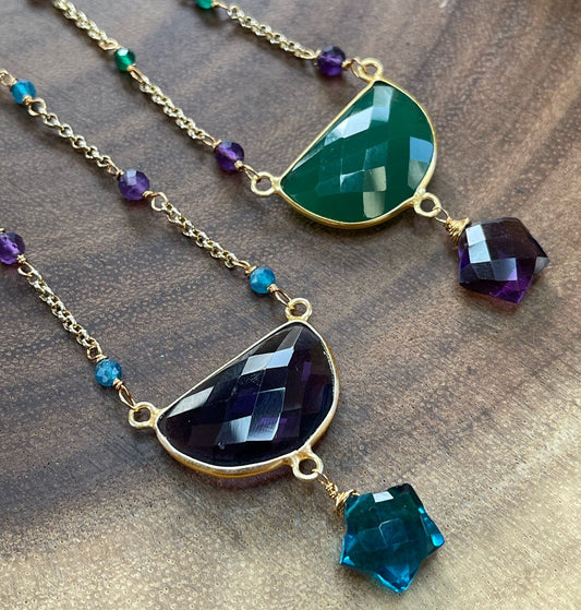 Green Chalcedony / Amethyst Quartz Necklace