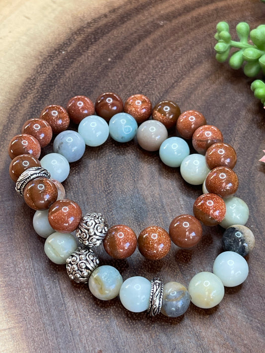Gold Sandstone/Amazonite Bracelet Set
