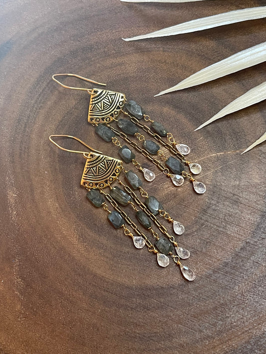 Labradorite Earrings - Moonstone Earrings - Chandelier Earrings
