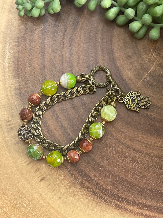 Green Agate/ Sandstone Beaded Chunky Bracelet