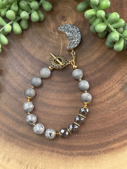 Gray Druzy Crescent Beaded Bracelet