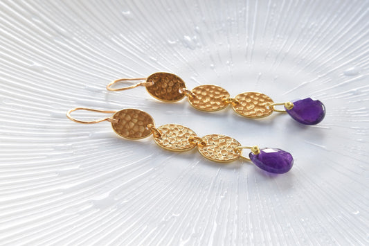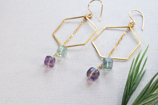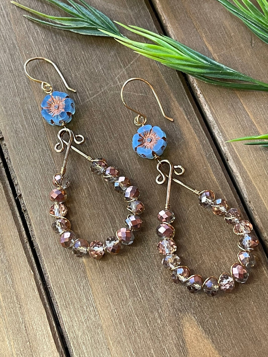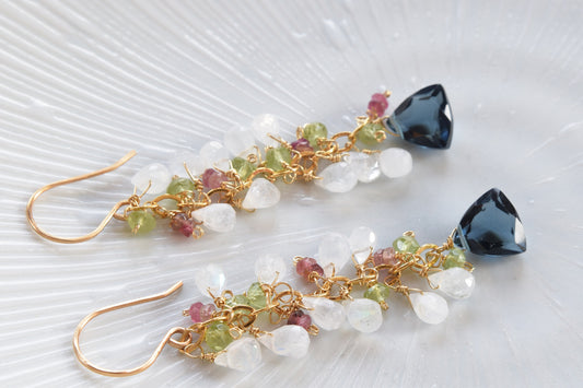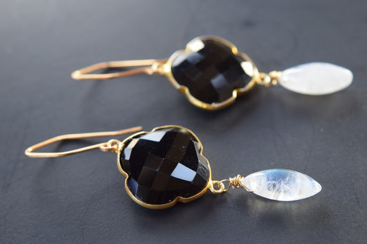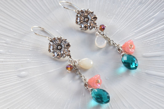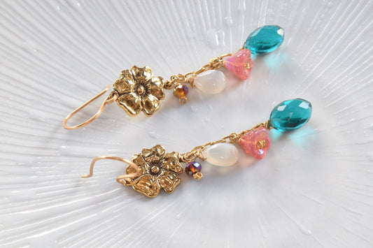 Teal Quartz / Moonstone Flower Earrings (Gold)