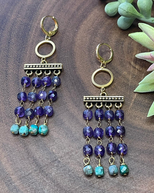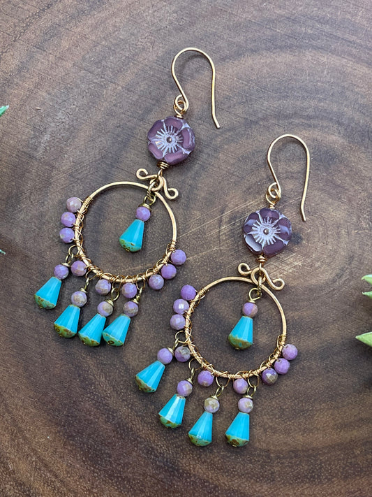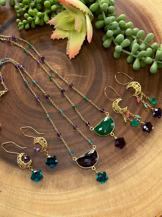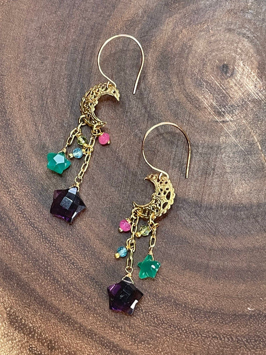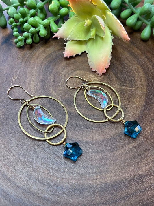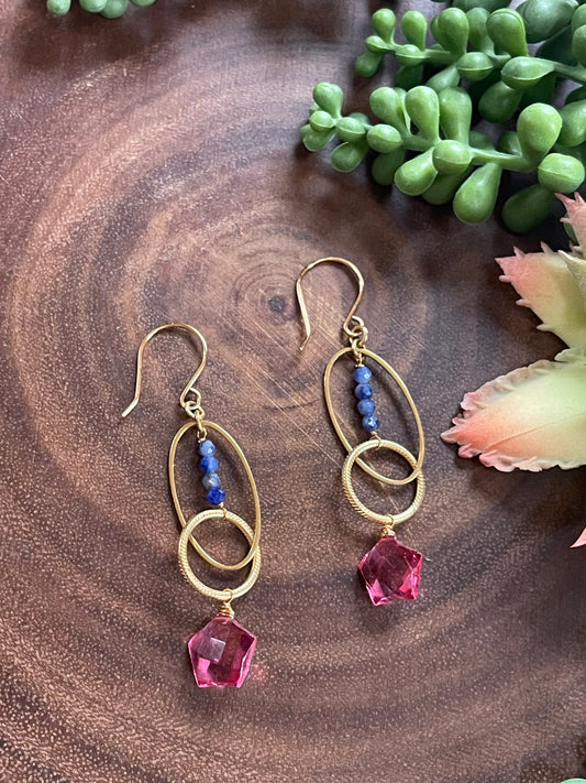 Pink Quartz Stars/ Sodalite Hoop Earrings
