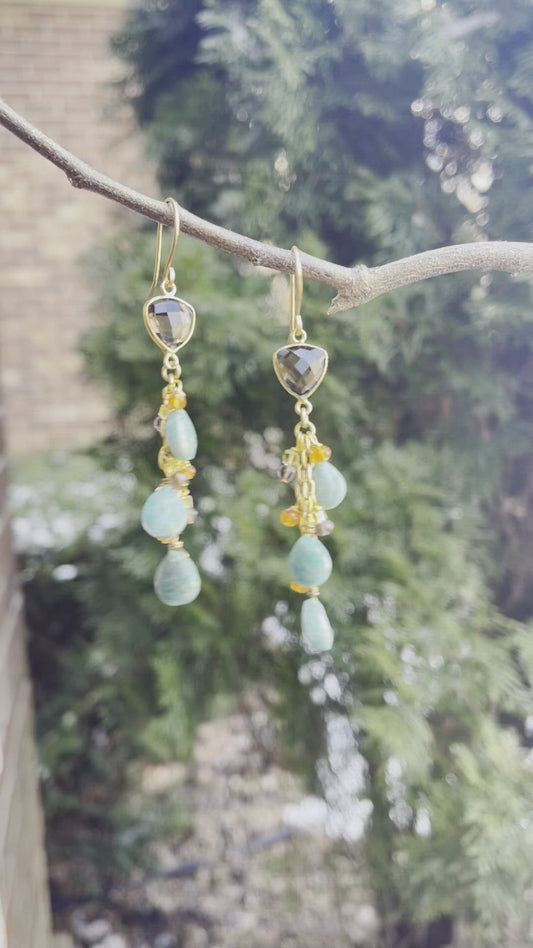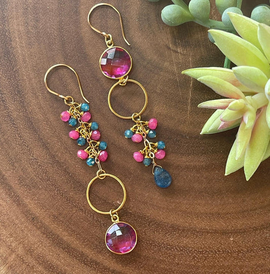 Pink Aura Quartz / Apatite Asymmetrical Earrings