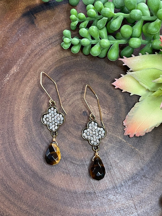 Sold outVendor:Willow West JewelryTiger Eye Clover Dangle Earrings