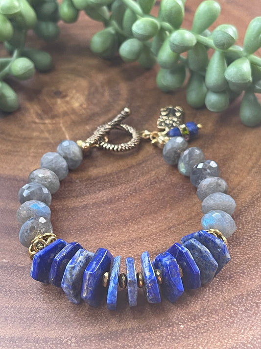 Lapis Lazuli Bracelet - Labradorite Beaded Bracelet - Gemstone Bracelet - Blue Bracelet