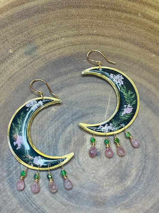 Moon Earrings - Celestial Earrings - Resin Earrings - Flower Earrings