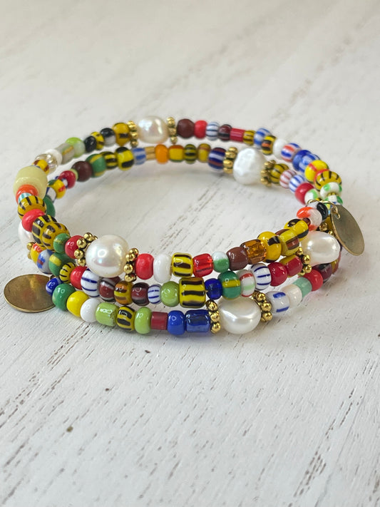 Wrap Bracelet - African Glass Beads - Bangle Bracelet - Boho Bracelet