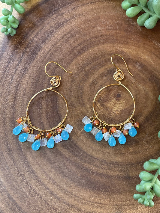 Blue Chalcedony Hoop Earrings - Gemstone Hoop Earrings