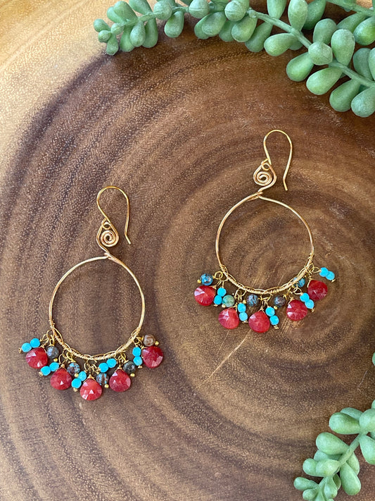 Labradorite Hoop Earrings - Gemstone Hoop Earrings