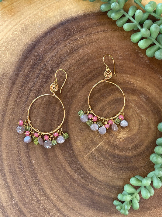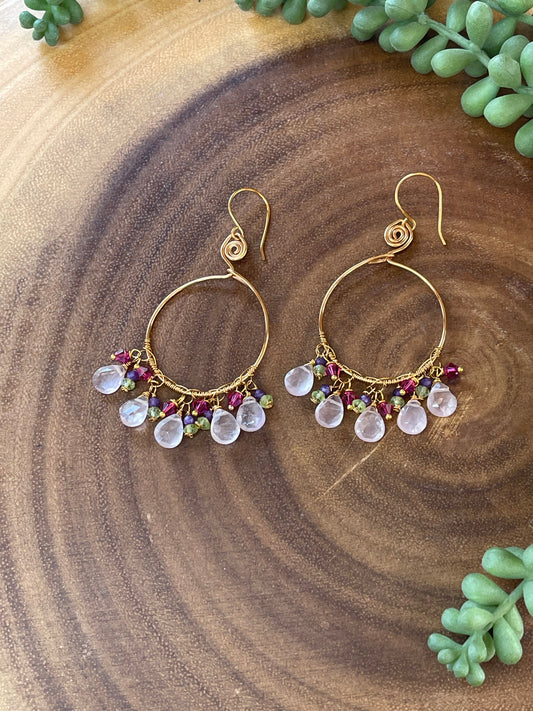 Rose Quartz Hoop Earrings - Gemstone Hoop Earrings