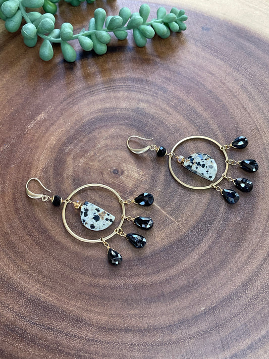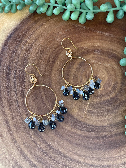 Black Onyx Hoop Earrings - Moon Earrings