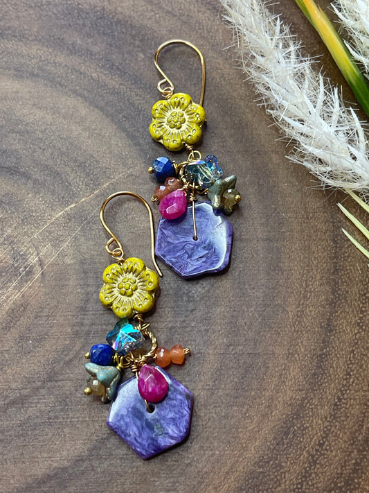 Flower Earrings - Gemstone Earrings - Purple Earrings