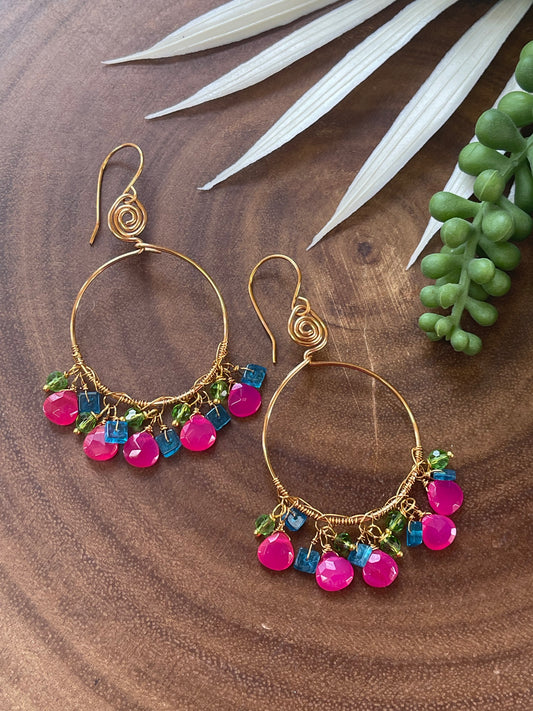 Pink Chalcedony Hoop Earrings - Gemstone Hoop Earrings