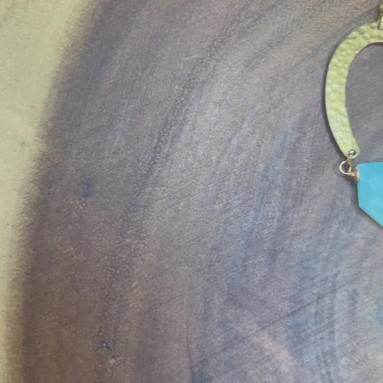 These expertly crafted brass dangle earrings feature a distinctive U-shape design, accented by soothing amazonite gemstones. Measuring 2 inches in length, they offer a balanced blend of bold style and natural elegance, perfect for elevating both casual and formal ensembles. The combination of durable brass and calming amazonite ensures lasting wear and a refined aesthetic.