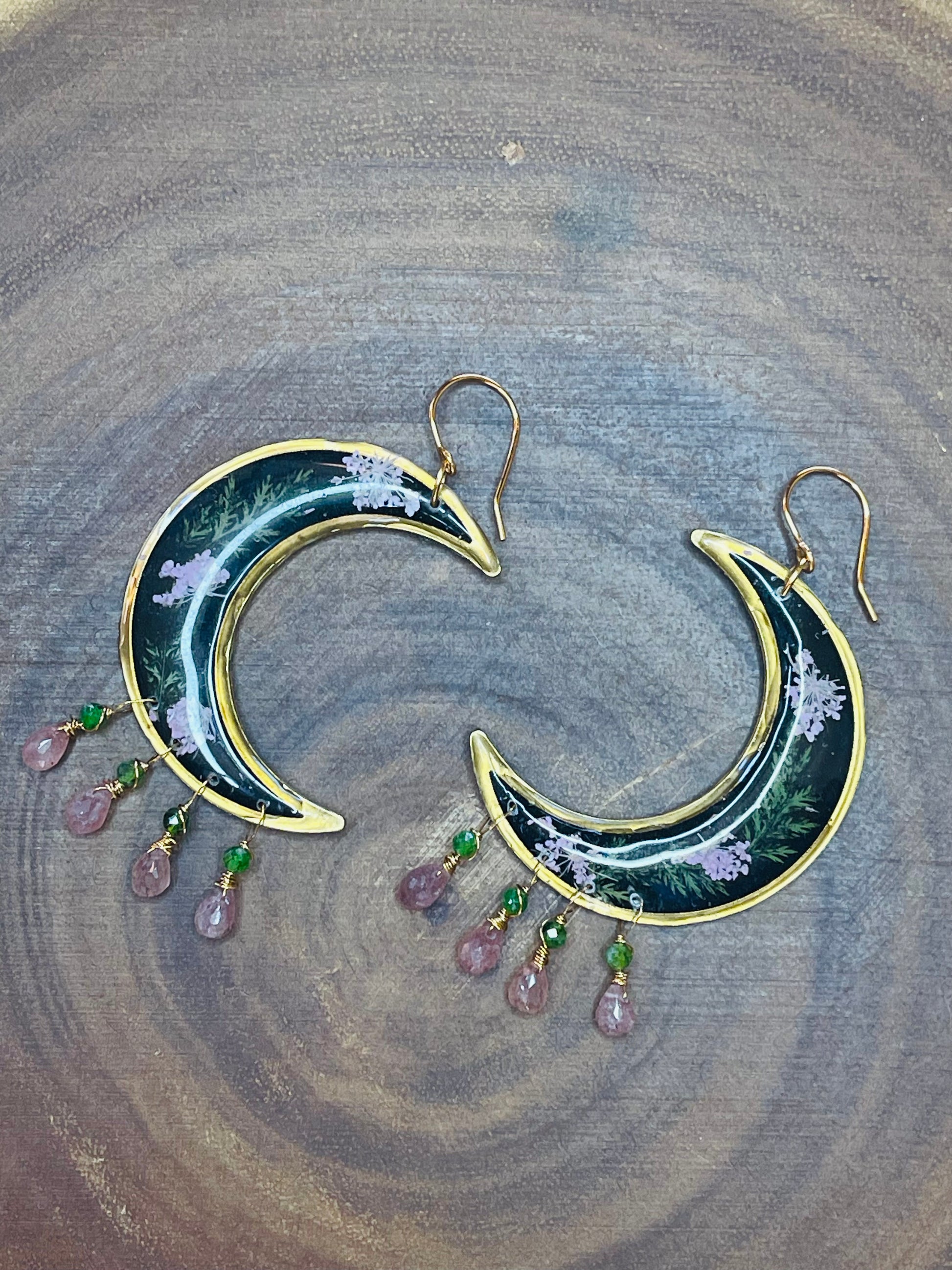 Moon Earrings - Celestial Earrings - Resin Earrings - Flower Earrings