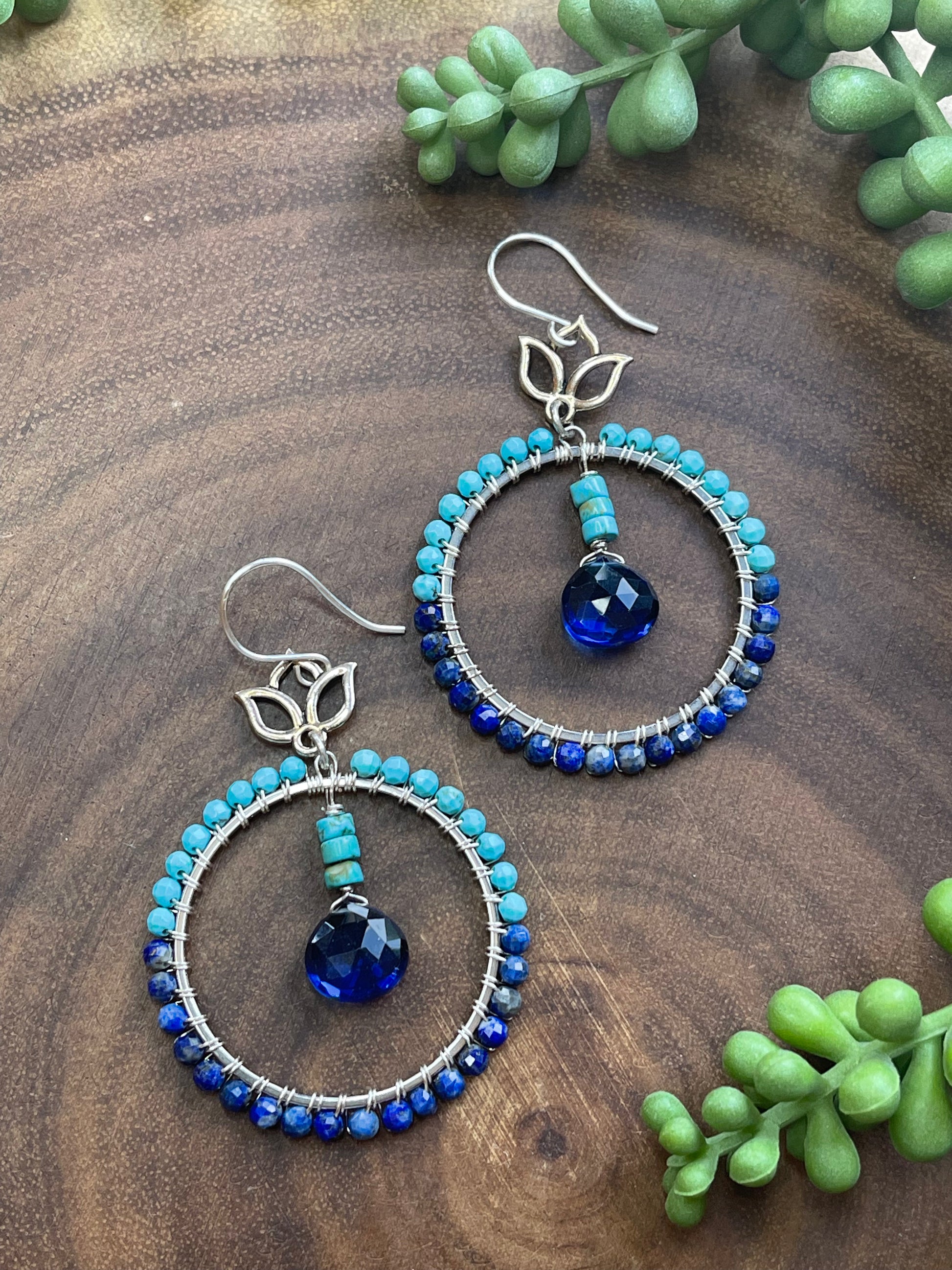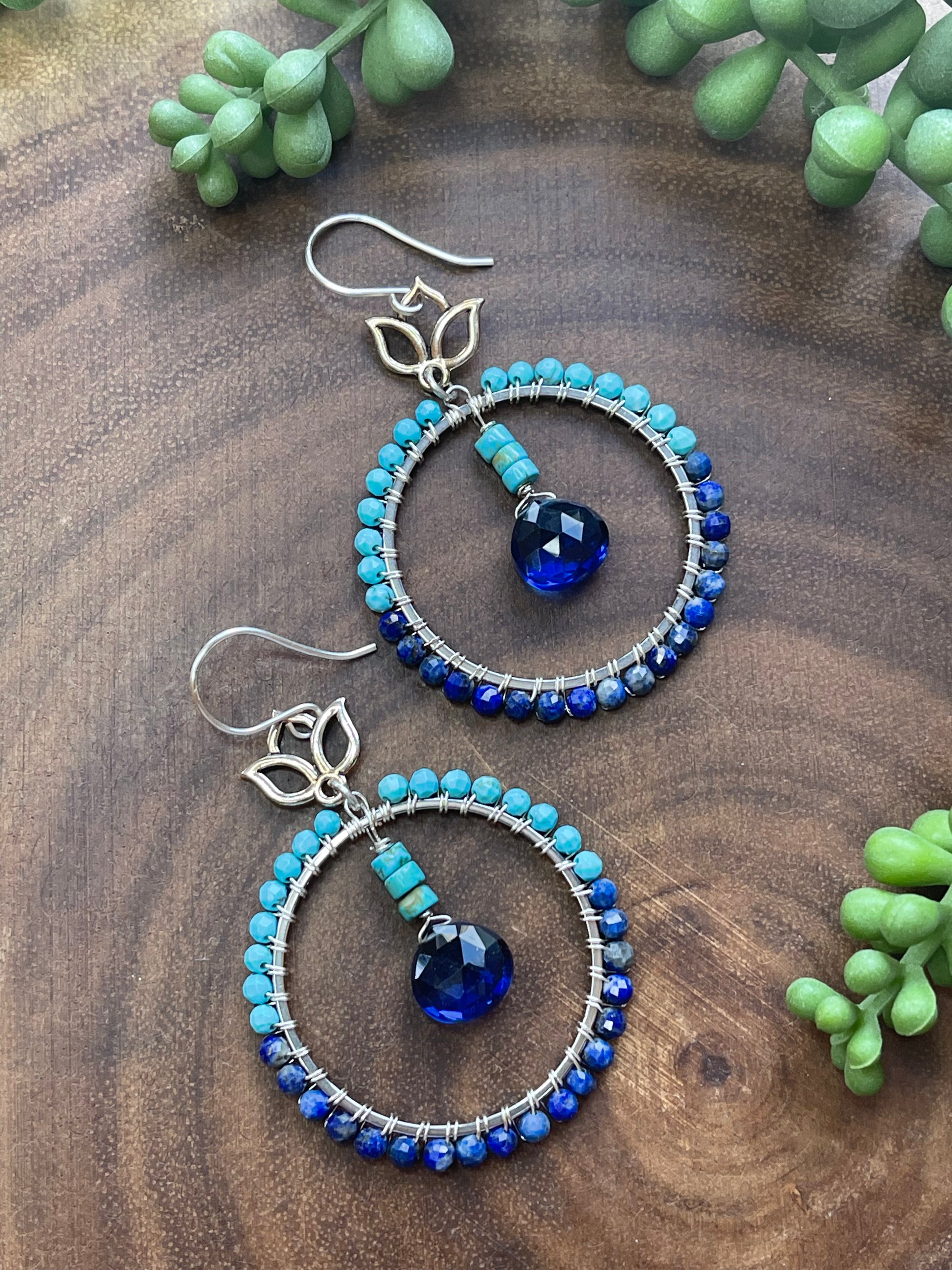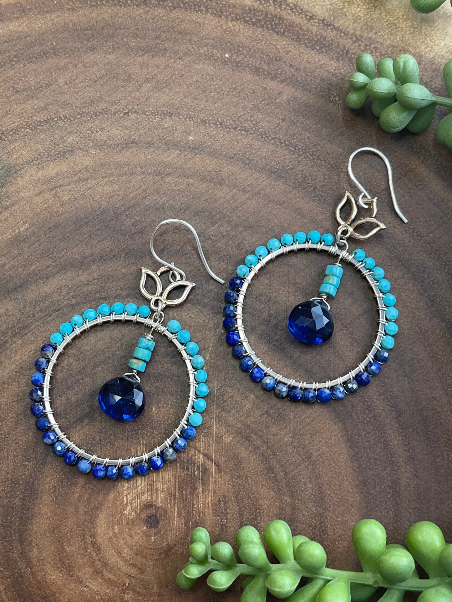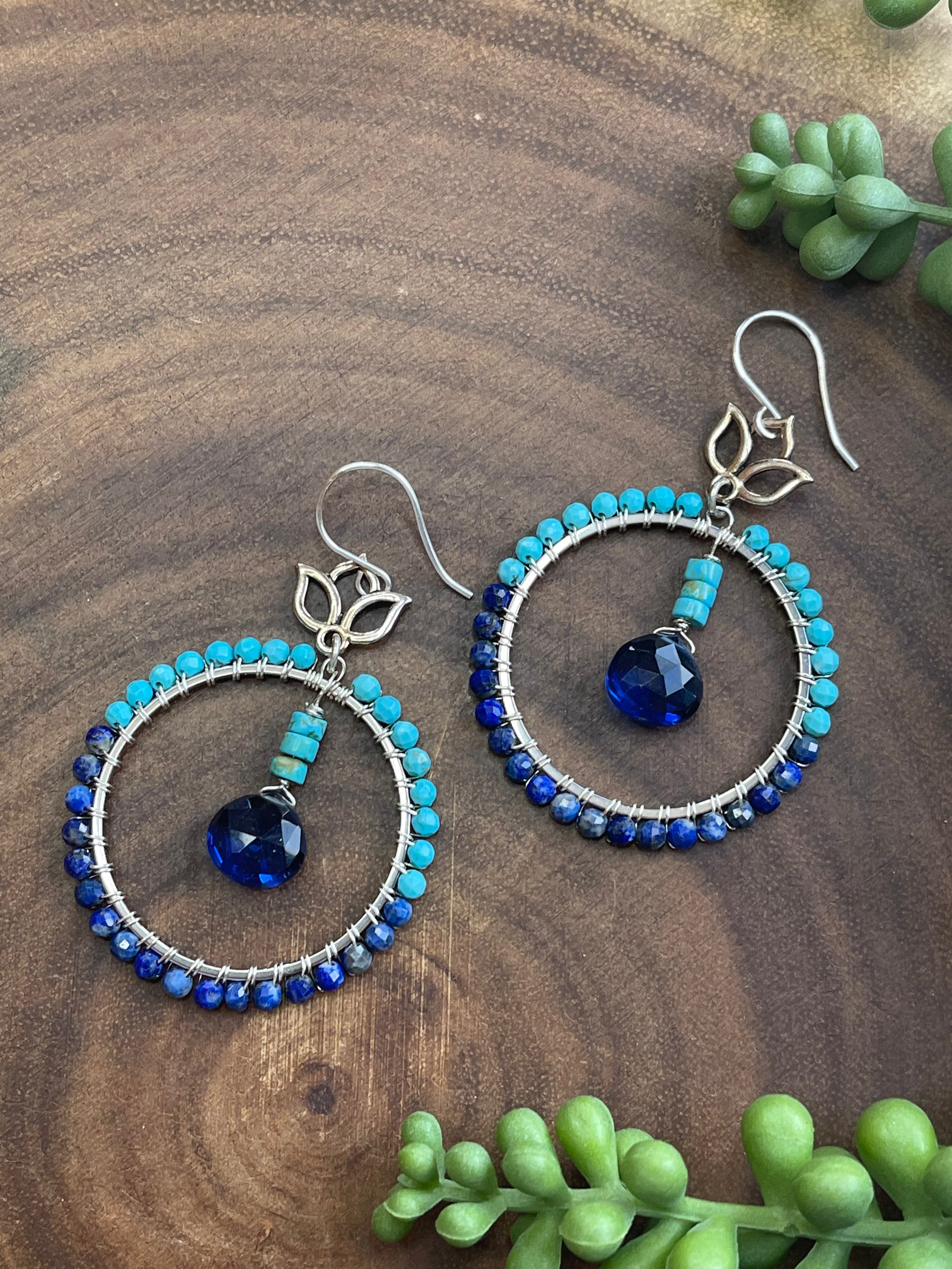 Turquoise / Lapis Lazuli Hoop Earrings