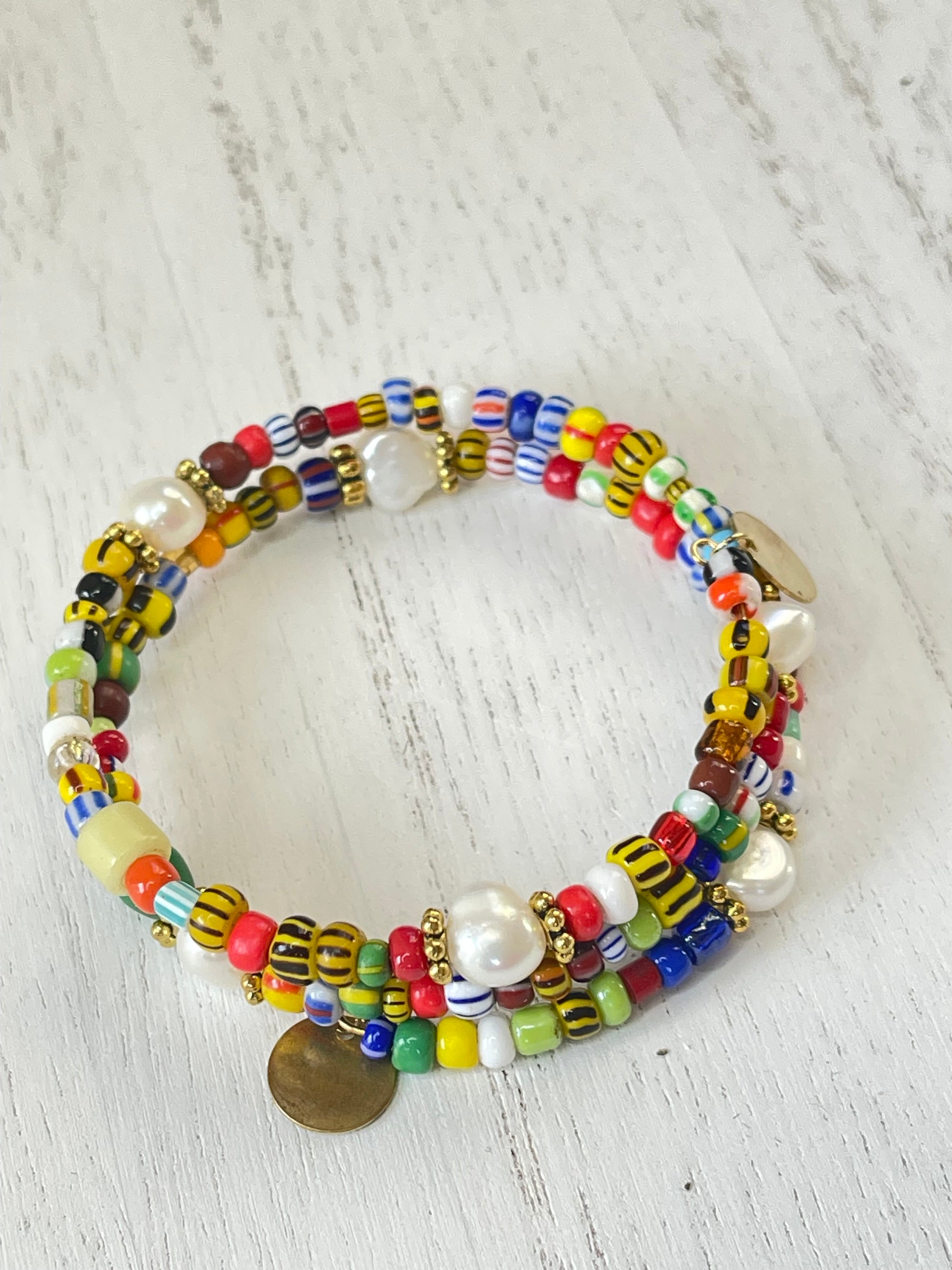 Wrap Bracelet - African Glass Beads - Bangle Bracelet - Boho Bracelet